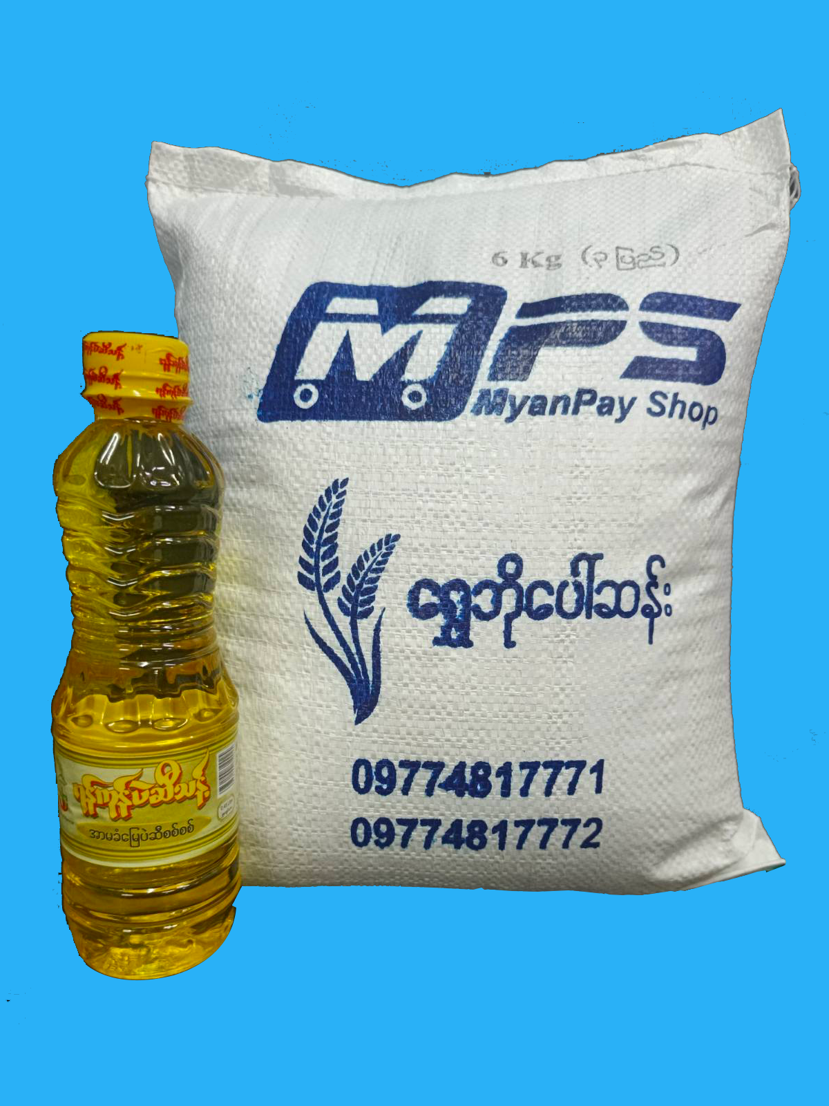 Ayeyarwady (ဧရာဝတီ ကျားပျံ) 6Kg + ရန်ကုန်ပဲဆီသန့် - 25 ကျပ်သား (Yangon Pure Groundnut Oil - 450 ml)